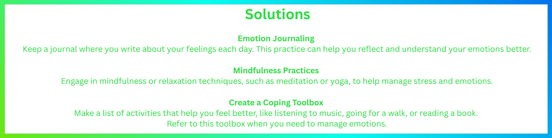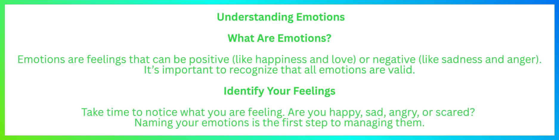 Managing emotions undersatnding and expressing feelings
